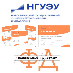 Педагог и наши учащиеся успешно справились с заданиями, показали высокие результаты, набрали 22-24 балла из 25 возможных, и получили персональные Сертификаты, где отражены результаты. Молодцы ребята! В 2025 году результаты прохождения Финдиктанта будут учитываться в качестве индивидуальных достижений при поступлении в НГУЭУ.